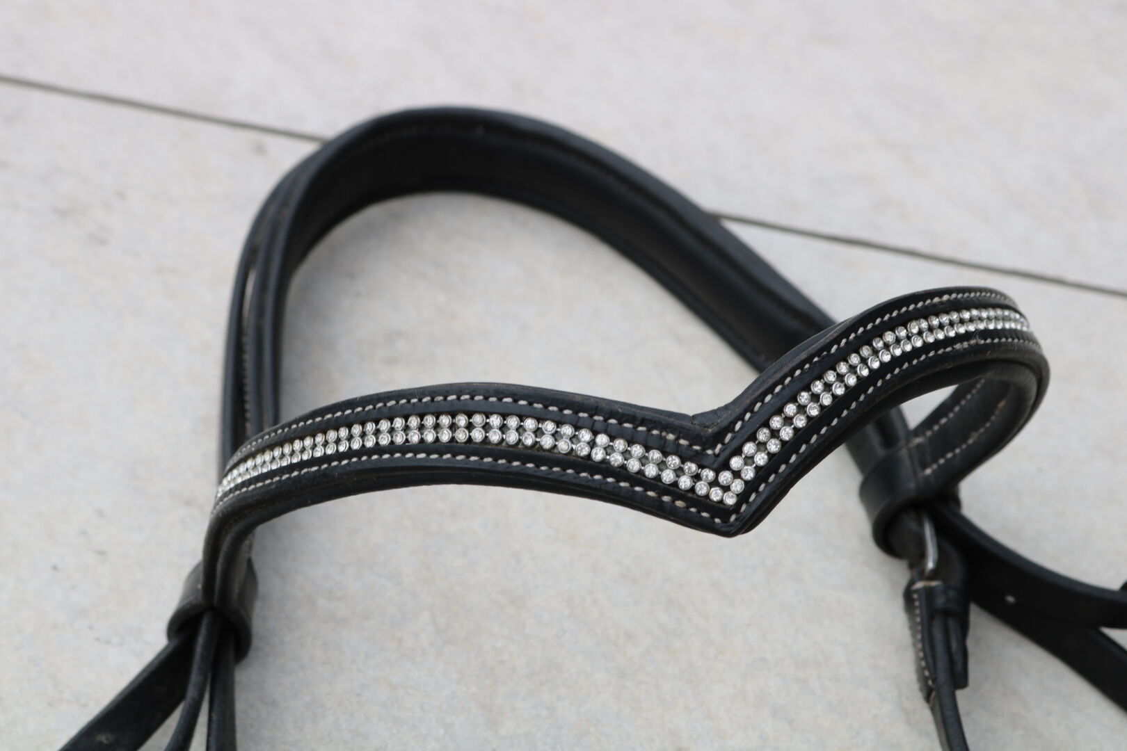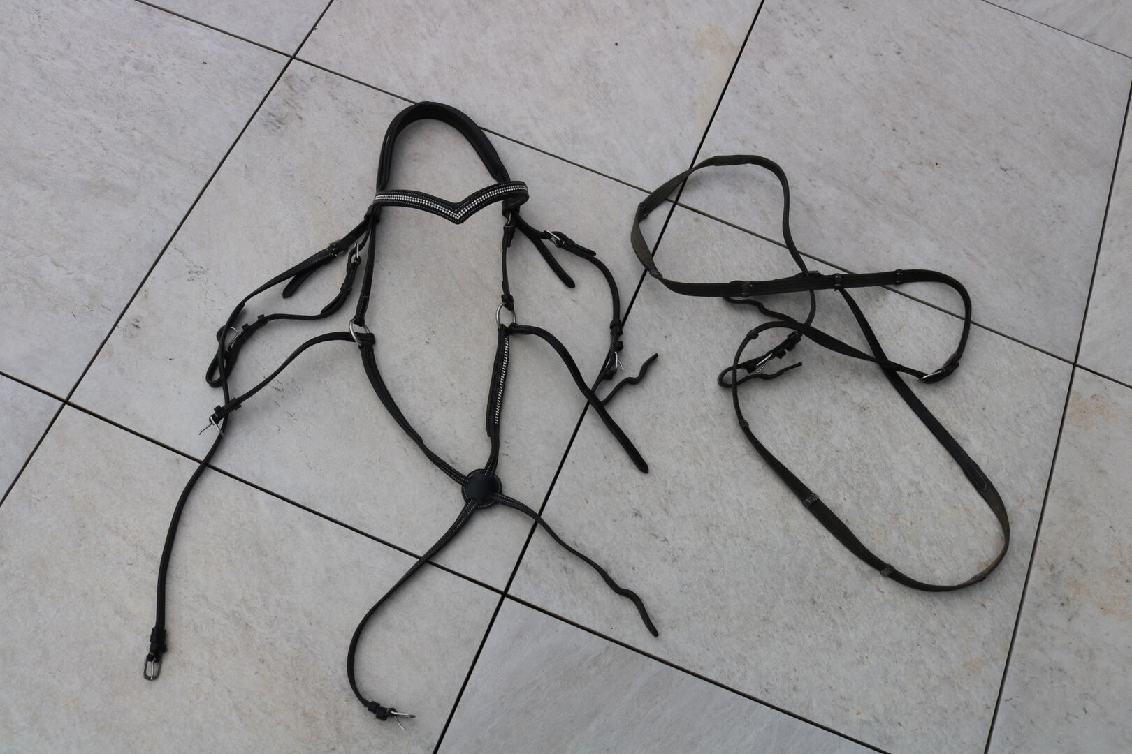 Uzda meksykańska wraz z lejcami na sprzedaż - Co: Uzda meksykańska z dżetami, bez futra Marka: Loesdau Rozmiar: pełny Stan: używany, ale w dobrym stanie, futro na nosie wymaga wymiany (zostało usunięte) Nowa cena: około 130,00 CHF Cena: 40,00 CHF do negocjacji Metoda płatności: Twint, gotówka z góry (bank), gotówka przy odbiorze