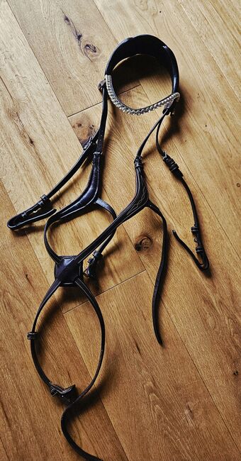 Uzda snaffle PS of Sweden Athens, brązowa - Na sprzedaż piękna uzda snaffle od PS of Sweden. Zadbane, używane tylko na pokazach. W zestawie ekskluzywny pasek do brwi.