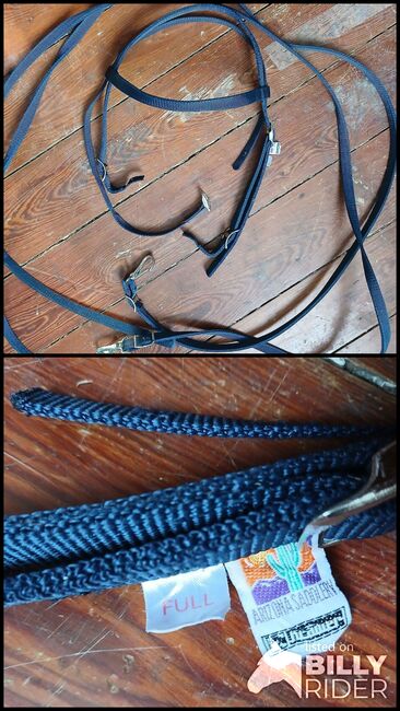 Uzda westernowa - Bardzo lekka uzda westernowa z wędzidłami wykonanymi z mocnej, ciemnoniebieskiej taśmy. Rozmiar Full