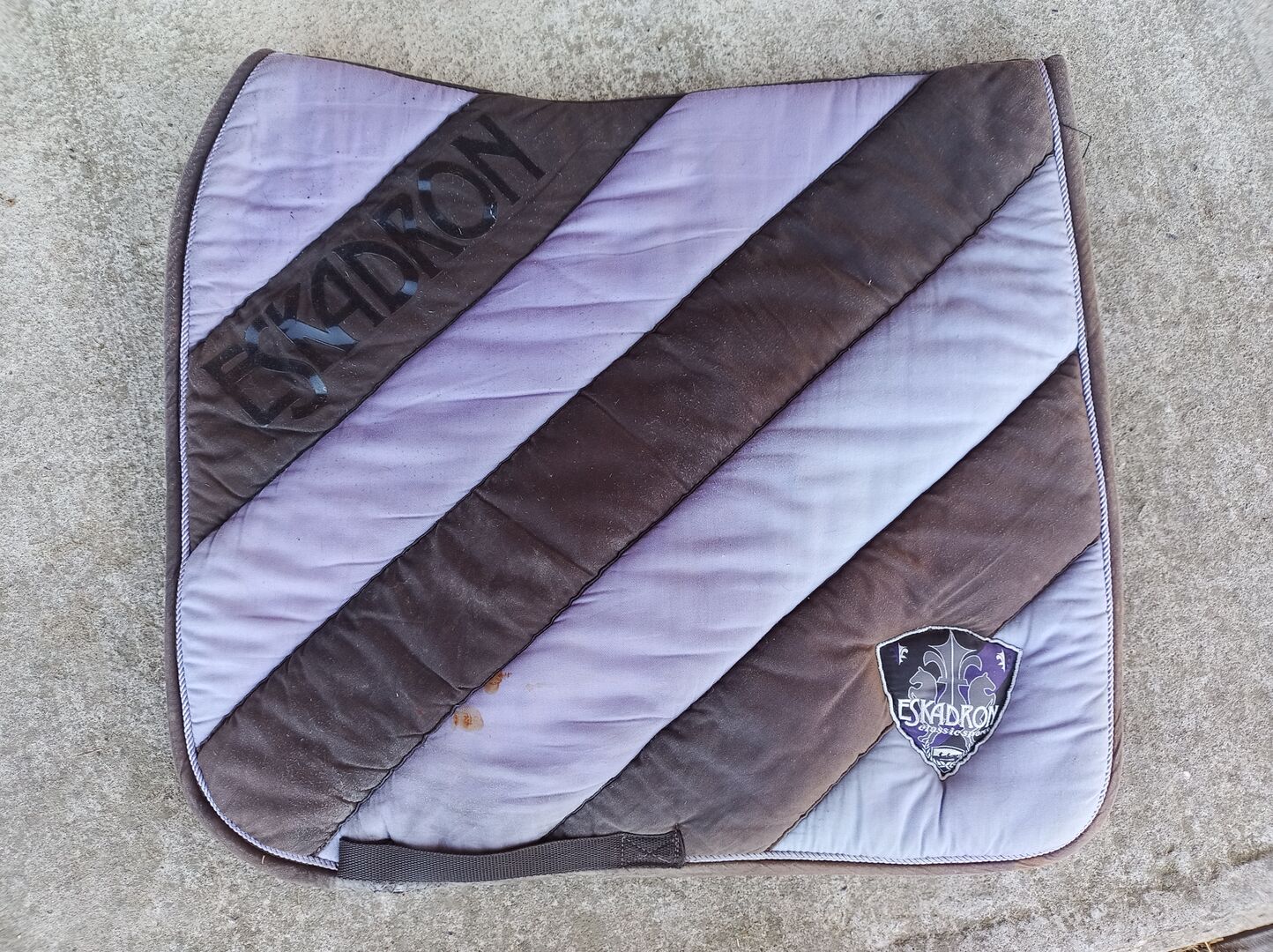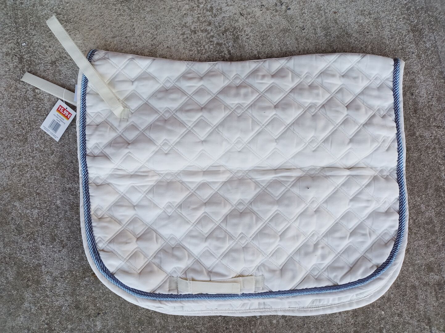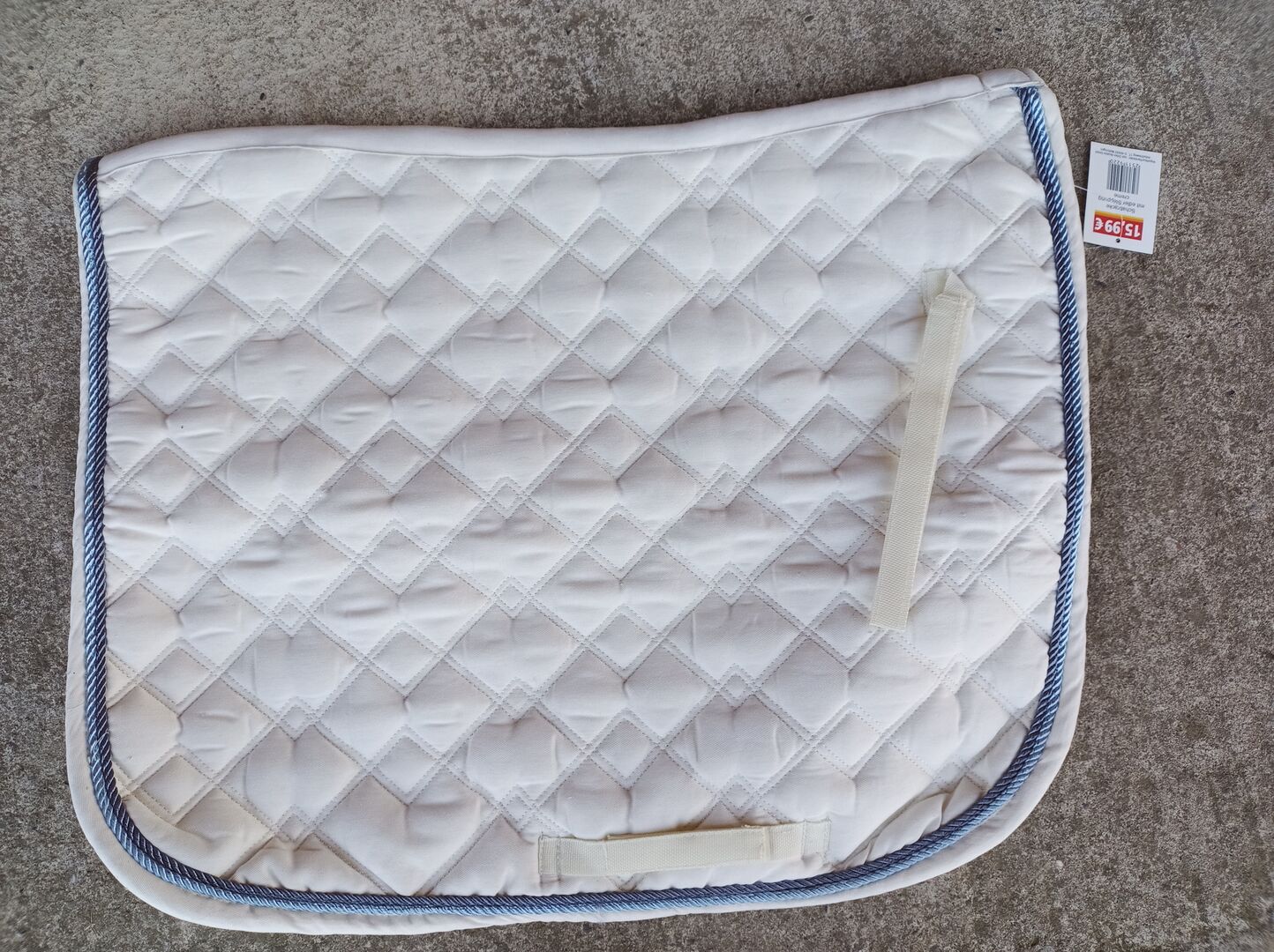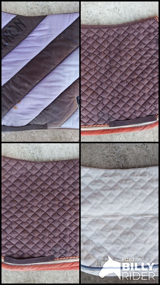 Używane podkładki pod siodła ujeżdżeniowe - Pakiet trzech używanych podkładek pod siodła ujeżdżeniowe, w tym nowy biały i Eskadron, który ma ładne grube wypełnienie. Cena obejmuje wysyłkę.