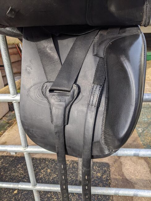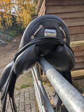 Siodło kupiłam od rymarza w lipcu tego roku. Klapy są mocno zszyte i siedzi się w nim bardzo wygodnie i bezpiecznie. Jest w bardzo dobrym stanie, zawsze było sumiennie pielęgnowane i zawsze było suche. Zostało świeżo nasmarowane na zdjęciach, dlatego nadal jest trochę błyszczące.
