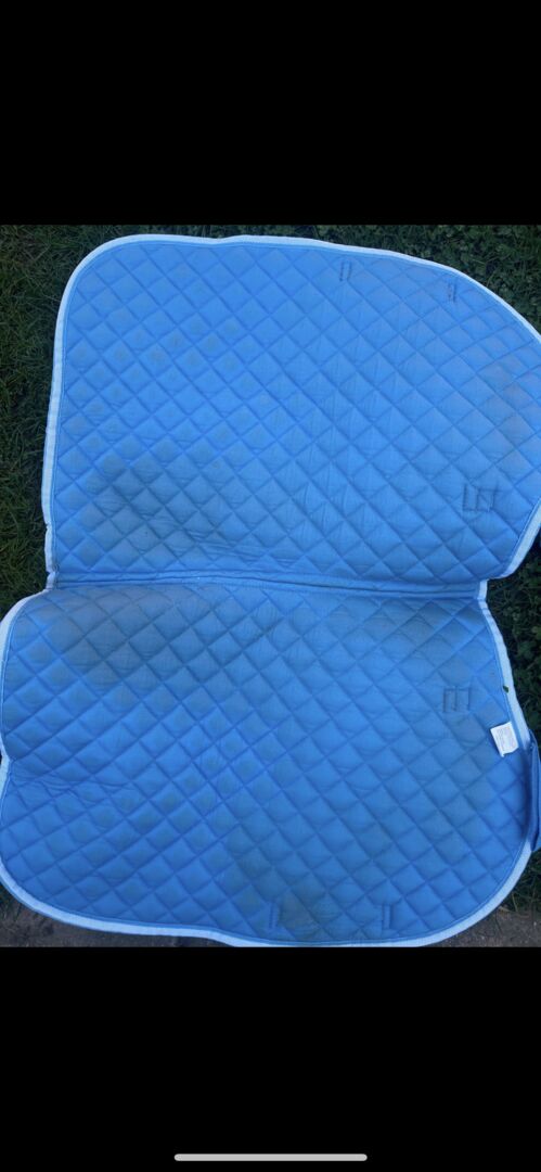 VS Podkładka pod siodło jasnoniebieska Horze - Bardzo rzadko używany, piękny kolor, świeżo wyprany. Niektóre włosy nie wypadły po umyciu. Jeśli masz pytania lub jesteś zainteresowany, skontaktuj się ze mną.