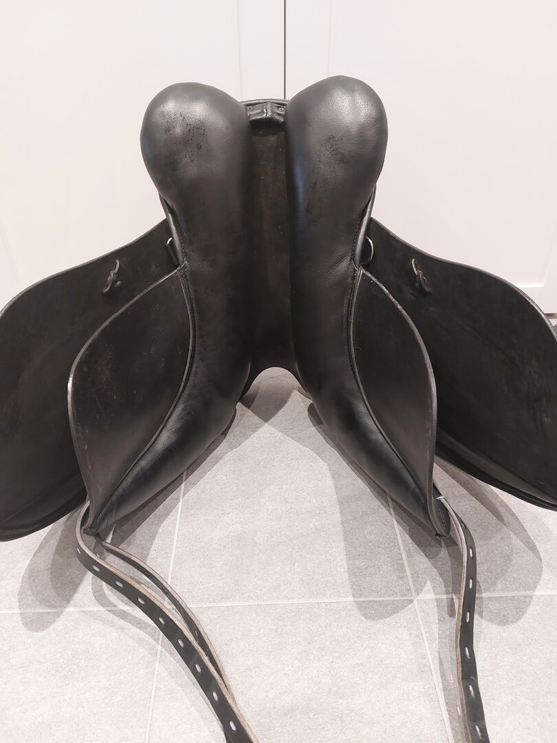 Czarny, szerokość klatki piersiowej 2, rozmiar siedziska 3, regulowane na zimno, wyściółka wymaga sprawdzenia, małe nierówności na tylnym pomoście.