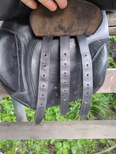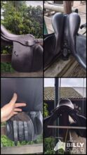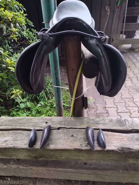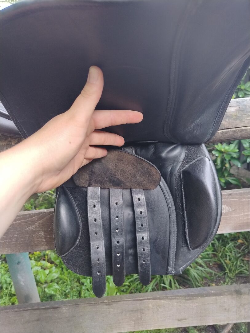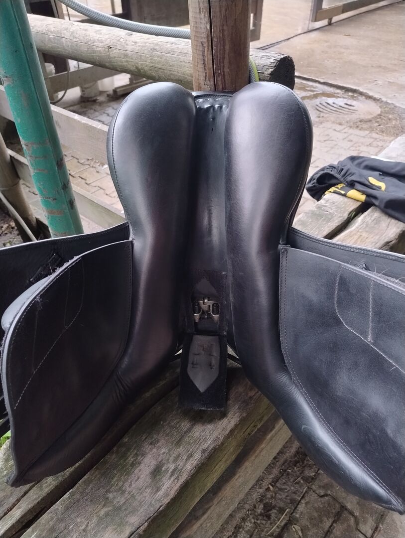 VSS Saddle Felix Bühler - Na sprzedaż jest moje ukochane siodło Felix Bühler w rozmiarze 18 cali i płaskim siedziskiem. Siodło jest regulowane w komorze. Możesz łatwo dokonać tej regulacji samodzielnie za pomocą dołączonego narzędzia. Regulacja odbywa się za pomocą trzech śrub. Prosta regulacja sprawia, że siodło jest idealne dla młodych koni, koni w fazie rehabilitacji lub rekonwalescencji i ogólnie dla wszystkich koni, które (powinny) rozwijać się fizycznie. Siodło wyposażone jest w sprężyny camber. Po przetestowaniu ich osobiście mogę powiedzieć, że działają idealnie - rolki kolanowe są przymocowane za pomocą rzepów, dzięki czemu można je indywidualnie dopasować do jeźdźca lub całkowicie usunąć. Siodło zostało zakupione w celu zajeżdżenia konia i w tym celu sprawdziło się idealnie. Ponieważ mój koń jest w pełni rozwinięty i w zaawansowanym treningu, nasz partner treningowy może teraz przenieść się i wykonać dobrą robotę dla innego zespołu ❤️ W zestawie znajdują się klasyczne strzemiona i popręgi. W razie potrzeby prosty długi popręg i podkładka pod siodło, abyśmy mogli od razu rozpocząć trening Popręg był dla nas za długi. Siodło zostało zabrane do mistrza rymarstwa w celu naprawy szwu, który się rozpiął i aby wyglądało tak ładnie, jak je kupiłem, zostało ponownie polakierowane kolorem skóry. Poza drobnymi otarciami na przełyku (ponieważ mój koń kiedyś zepchnął siodło z pręta), siodło nie ma innych uszkodzeń. Mówię jak jest, jeśli kupujesz je do treningu młodego konia, to w tej cenie nie będzie bolało tak bardzo, jak mnie krótko po zakupie Siodło zawsze było przechowywane i pielęgnowane w suchym miejscu. Wymiary można zobaczyć na zdjęciach. W razie jakichkolwiek pytań proszę o kontakt. Jestem gotów wysłać siodło dobrze zapakowane i wyściełane i oczywiście ubezpieczone.
