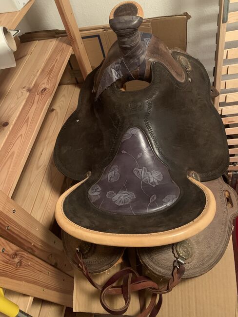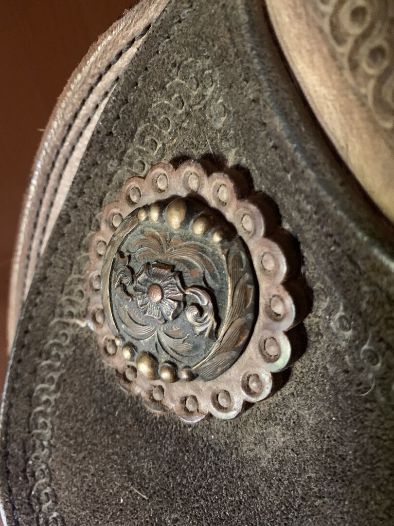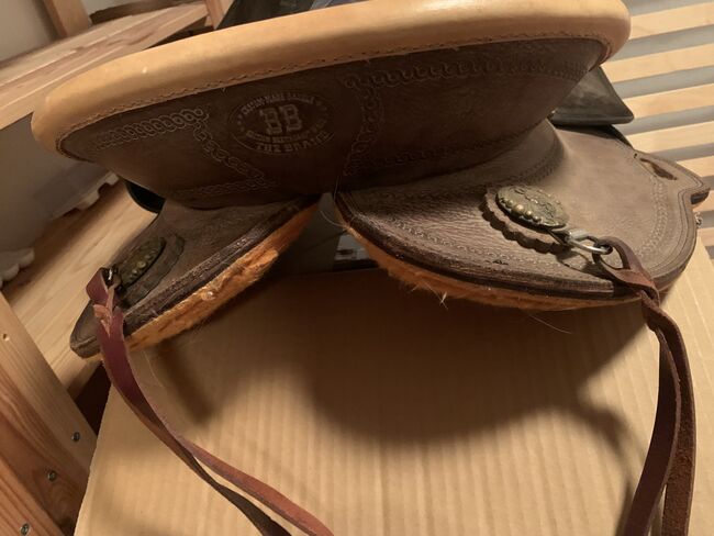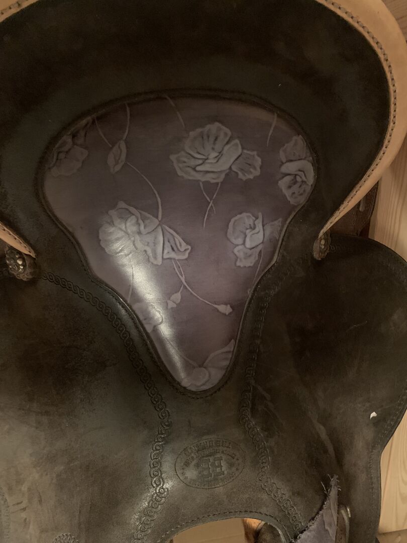Wade Saddle BB the Brand - Kolor siedziska: inkrustowane siedzisko z motywem róży Rozmiar: 16" D-ringi: przednia płyta, tylna spódnica Conchos: 6x róże w miedzi Można również odebrać w powiecie Weilheim-Schongau w Górnej Bawarii