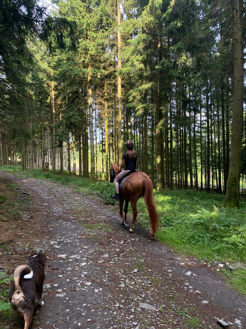 Wałach hanowerski (4 lata) - "Miles" to przyjazny, zorientowany na ludzi, przytulasty młodzieniec, który szuka teraz swojego partnera na całe życie. Wciąż jest na samym początku swojego szkolenia, dlatego potrzebuje kogoś, kto lubi go zachęcać. Mieszka u nas w otwartej stajni w mieszanym stadzie. Do tej pory bawiliśmy się z nim używając naturalnego jeździectwa. (Dla "ludzi Parellego" wśród was: jego podstawowym typem jest RBI, a kiedy czuje się bezpiecznie podczas zabawy, staje się bardziej LBE i to jest naprawdę zabawne :-)...). Z ciekawością eksploruje przeszkody na szlaku, a także lubi wychodzić w teren. Na jednym ze zdjęć widać, że ma małego sacroida na szyi, ten "znak piękna" jest wliczony w cenę, ale można go leczyć maścią i na szczęście mu nie przeszkadza. Jeśli jesteś zainteresowany, możemy umówić się na kilka spotkań, aby go poznać, najważniejsze jest to, że znajdzie miły dom. W razie zainteresowania prosimy o kontakt (0170/7080259).