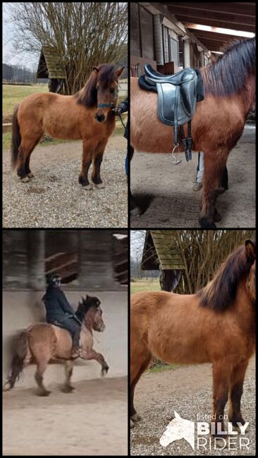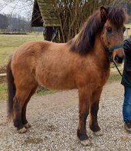 Wałach islandzki brązowy płowy - Tengill urodził się w Austrii w 5/2018 roku i przyjechał do nas bezpośrednio od hodowcy (Stefanihof) na początku 2025 roku. Od razu ujęła nas jego łagodna natura - prawdziwy dżentelmen. Mimo to jest bardzo ciekawy, czasami wciąż trochę niepewny z powodu braku doświadczenia, ale nie jest nerwowy ani niekontrolowany. Do tej pory nie miał żadnych złych doświadczeń z ludźmi i nie zna presji ani kary z naszej strony. Tak powinno pozostać po zmianie właściciela! Wsiadanie i wysiadanie z przyczepy nie stanowi dla niego problemu, zna też kowala i weterynarza. Od początku kwietnia do końca października całe dnie spędza na pastwiskach należących do gospodarstwa, a w miesiącach zimowych w otwartej stajni z innymi wałachami. Tutaj ma tendencję do pokazywania się w wyższych szeregach bez ponadprzeciętnych zachowań dominacyjnych, ale nie stroni od wyraźnego zaznaczania swojego miejsca. Jego wyjątkowe umaszczenie i prezencja naprawdę się wyróżniają i czynią go kimś wyjątkowym. Pod siodłem pokazuje dużo akcji z dużą ilością wysokich/szerokich wodzy i po prostu chce się podobać lub bardzo szybko się uczy. Jego rozmiar umożliwia solidne siedzenie, zapewnia jeźdźcowi dużo bezpieczeństwa i jest po prostu przyjemny w jeździe. Widzimy w nim niezawodnego partnera zarówno jako luksusowego konia rekreacyjnego, jak i w 5-konnym sporcie, choć w obu tych obszarach jest jeszcze wiele do zrobienia. Jego mocna budowa i rozmiar czynią go również idealnym koniem dla dorosłych. Tengill jest obecnie regularnie szczepiony, odrobaczany i podkuwany i nie wykazuje oznak egzemy ani innych chorób. Ze względu na jego obecny poziom wyszkolenia, w tej chwili jest nadal w rozsądnej cenie, ale cena wzrośnie wraz z postępem jego treningu, który rozpoczniemy intensywnie od 2026 roku. Nie umieszczamy Tengilla w szkółce (!!!) i nie chcemy się go pozbywać za wszelką cenę. Zaangażowani jeźdźcy z wystarczającym doświadczeniem jeździeckim byliby dla niego idealnym partnerem, aby w pełni wykorzystać jego potencjał z dużą dozą cierpliwości! Przedział cenowy między 12 500 a 16 000 euro stanowi dla nas absolutną dolną i górną granicę i ostatecznie zbliży się do górnej granicy w miarę postępów w treningu.