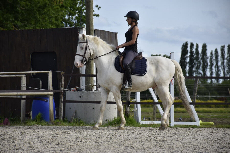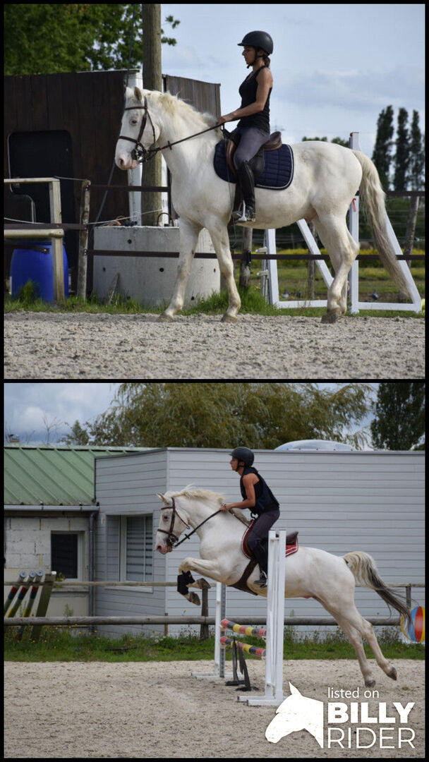 Small horse with very good gaits, started working at 5 years old after being a breeding stallion for his qualities as a sport horse and his particular coat.