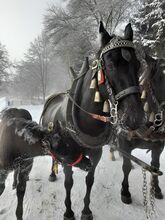 Wałach mieszany rasy fryzyjskiej wielkiej x noriker - Jack to 3-letni czarny wałach rasy norik x mieszanka fryzyjska, bez umaszczenia. Jest bardzo przyjazny, zarówno w stosunku do innych koni, jak i ludzi. Jack ma ok. 152 cm wzrostu, był zajeżdżany w 2-3 i 4 uprzężach i jeżdżony we wszystkich 3 chodach w terenie. Jest zawsze zmotywowany do pracy i chce robić wszystko dobrze. Jest nieustraszony, dobrze wychowany i niewrażliwy na hałas. Już jako źrebak biegał z mamą w zaprzęgu, co wiele go nauczyło. Jest również bardzo dobrze zaznajomiony z innymi zwierzętami gospodarskimi, maszynami i dziećmi. Jack bardzo dobrze zachowuje się w przyczepie dla koni i u kowala, ma bose kopyta.