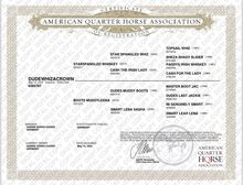 Jego matka, Boots Muddyleena, to piękna i absolutnie zrelaksowana klacz z linii Smart Little Lena. Jest uosobieniem niezawodności, a Dudewhizacrown zdaje się odziedziczył po niej dokładnie ten charakter. Jego ojciec, Starspangled Whisky, pochodzi z linii Topsail Whiz - znanej na całym świecie z wybitnych koni reiningowych.