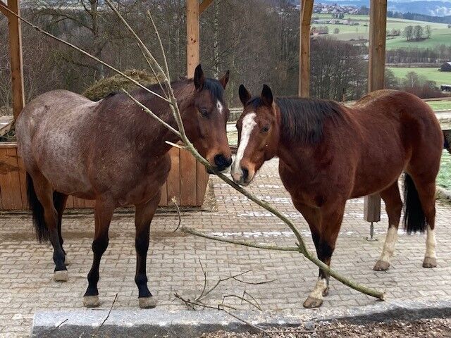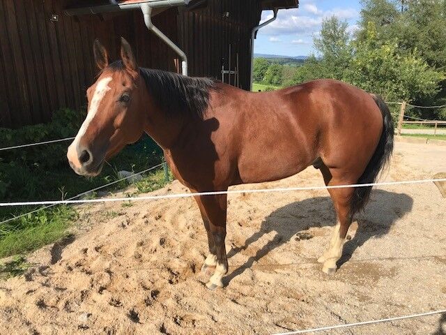 Wałach rasy Quarter Horse stojący w typie zaprzęgowym - Lokalizacja: 94239 Zachenberg Z ciężkim sercem ten piękny wałach rasy Quarter Horse szuka nowego 5-gwiazdkowego domu. Niestety, nie można mu zapewnić odpowiedniej opieki, której potrzebuje. Urodził się w 2015 roku i ma 155 cm wzrostu. Docs Diamond Spirit to bardzo silny wałach, który dobrze kryje również silnych jeźdźców. Olli ma wrażliwy, zorientowany na ludzi charakter i potrzebuje opiekuna. Jest bardzo uważny i bardzo dobrze ujeżdżony. Dlatego potrzebuje wrażliwego jeźdźca z wyczuciem wałacha. Nie nadaje się dla osób o słabej motoryce itp. Niestety Olli nie nadaje się do otwartej stajni i będzie sprzedawany tylko w boksie z dostępem do pastwiska. Może być również trzymany tylko w stadzie z wałachami. Wałach ma solidny podstawowy trening (11-miesięczny kalifornijczyk) i NIE opanował żadnych manewrów reiningowych. Ambitnie pracuje w wolnym czasie i dobrze zachowuje się w terenie, sam i w grupie. Olli to koń, który chce być regularnie jeżdżony, jest wtedy bardzo towarzyski. Niestety ma bliznę na tylnej nodze spowodowaną kontuzją, ale to mu nie przeszkadza i jest tylko skazą. Miał również sarkoidy, odkąd był źrebakiem, ale to się nie zmieniło. Olli to świetny koń dla osoby, która chce spędzać dużo czasu w siodle ze swoim partnerem.
