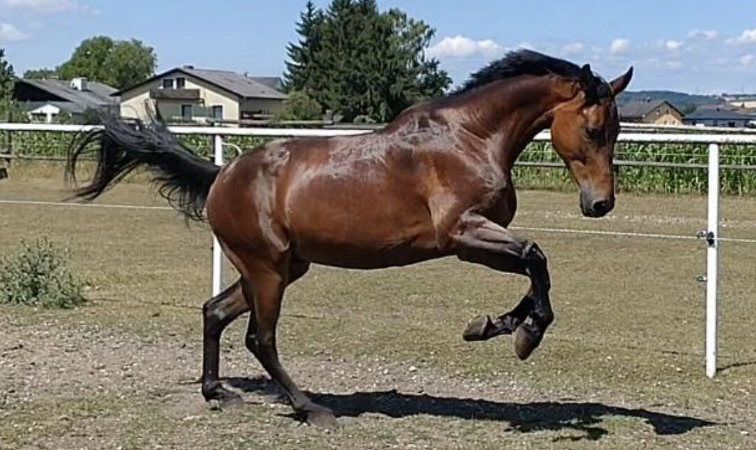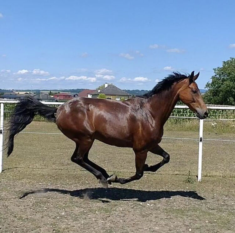 wałach WB - Nashville to brązowy 16-letni wałach rasy czeskiej Warmblood, który został wyhodowany ze strony ojca z koni holsztyńskich. Jeździł na 1, 2 i 4 koniach, sam w terenie jest płochliwy, ale jak tylko jest z nim zaufany kolega, to jest dobrze wychowany i idzie na żywioł. Jest absolutną przytulanką, kocha "swoich" ludzi i nie lubi się nimi dzielić. Niestety musimy zredukować nasze stado z powodu braku czasu i pieniędzy. Mamy go od 2016 roku i ani przez jeden dzień nie był chory ani nie kulał. W czasach przed nami był prawdopodobnie aktywny jako skoczek - ale nigdy nie sprawdzaliśmy jego możliwości. W tej chwili jest zupełnie niewyszkolony, ale chcielibyśmy, żeby trafił w kochające ręce, dlatego obowiązuje zasada place before price!