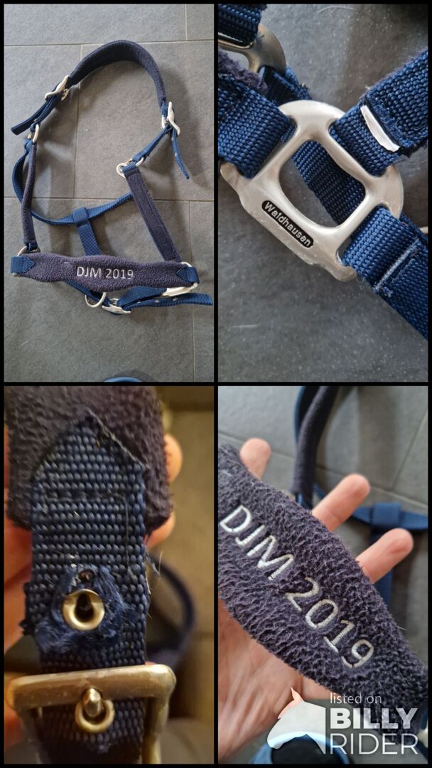 Waldhausen halter warm blood wb blue - Ładny halter z napisem i zwykłymi śladami użytkowania, jak widać jeden nit nie siedzi już prawidłowo i może wypaść. Wszystkie pozostałe otwory są nadal w pełni nienaruszone.