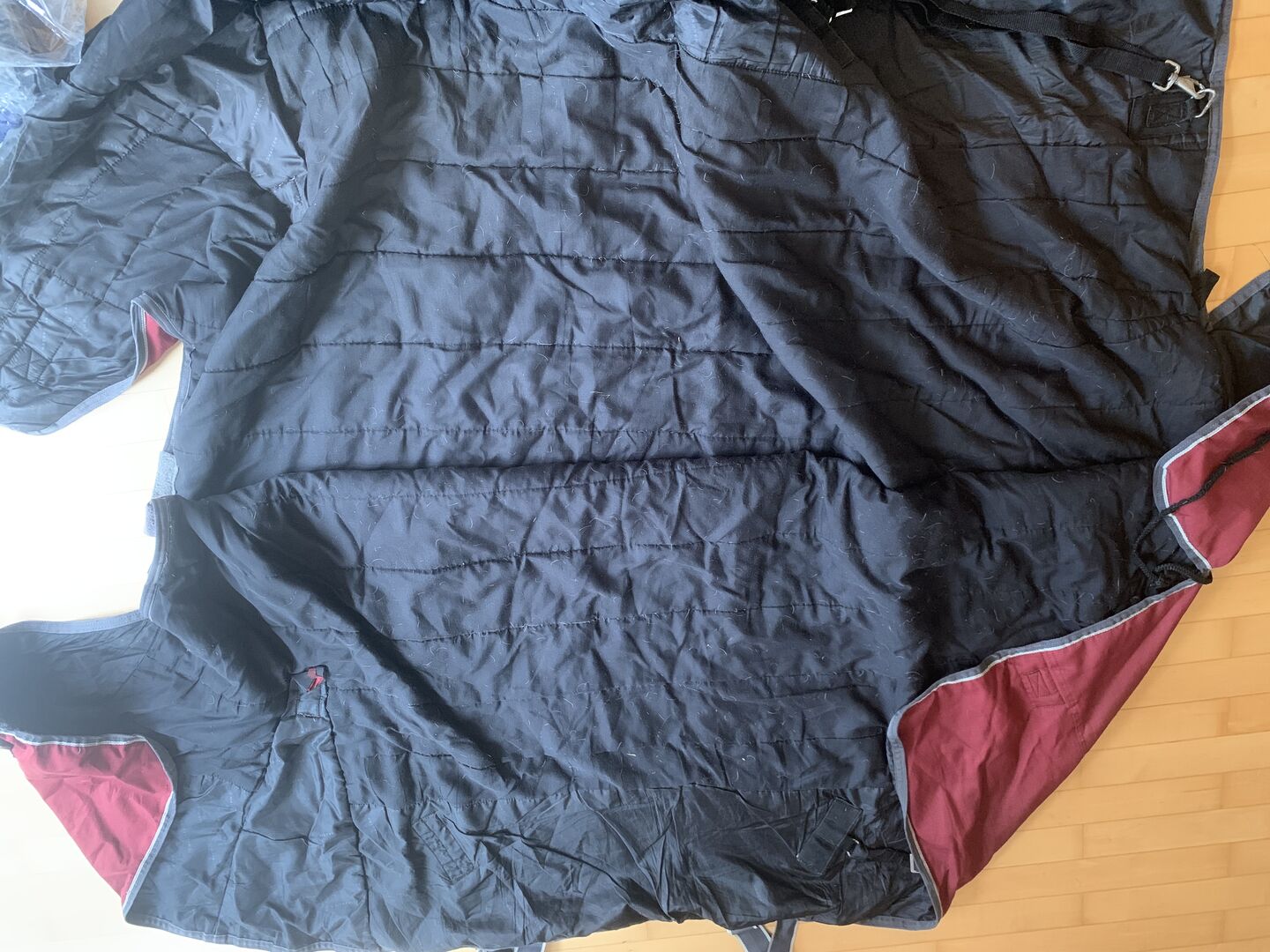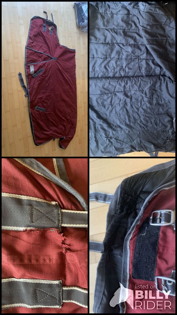 Waldhausen Rain Blanket 145cm, 200g - Koc przeciwdeszczowy 145 cm firmy Waldhausen z wypełnieniem 200g. Koc jest świeżo po pralni chemicznej z impregnacją i od tego czasu nie był noszony. Kocyk ma rozdarcie na piersi (ok. 5 cm), które można łatwo naprawić, a także pasek na rzepy. Widać to na zdjęciach.