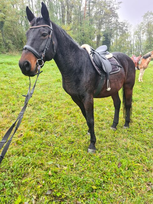 Warunkowo ujeżdżony wałach - Z ciężkim sercem muszę rozstać się z moim urodzonym w 2007 roku wałachem pełnej krwi Elan, o wzroście ok. 160 cm, z powodów osobistych. Jest dostępny jako warunkowo ujeżdżony koń boczny. Rok temu miał dziurę w ścięgnie, która została wyleczona przez wstawienie komórek macierzystych w klinice. W rezultacie nie był jeżdżony przez rok i musiał zostać ponownie wyszkolony. Od długiego stania nabawił się lekkiej artrozy. Według weterynarza nic nie stoi na przeszkodzie, by znów jeździć na nim rekreacyjnie. Obecnie nadal trochę kuleje na przednie nogi, dlatego nie pracował z nim zbyt wiele. Obecnie przebywa w boksie z wybiegiem i codziennym dostępem do padoku w mieszanym stadzie. Jest raczej niskiej rangi i dobrze tolerowany. Nie bez powodu nosi takie imię i nie jest koniem dla początkujących czy dzieci. Niestety nie ma możliwości jazdy próbnej ze względu na jego kulawiznę. Obecnie przebywa w stajni w Dolnej Austrii w okręgu Hollabrunn.
