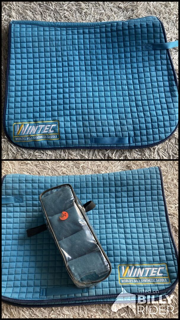 WB Wintec Saddle Pad Petrol - Przedmiotem oferty jest elegancka podkładka pod siodło w kolorze petrol. Podkładka pod siodło nie ma żadnych wad, jedynie kolor nieco wyblakł. Można je również kupić w zestawie z bandażami w benzynie.