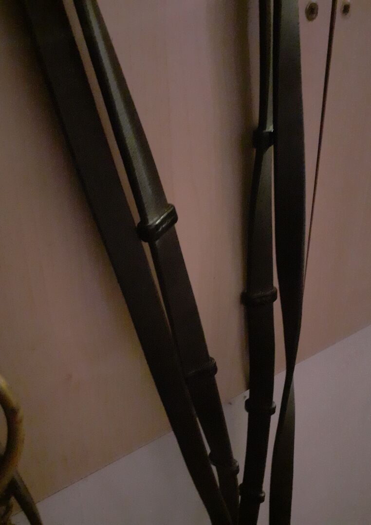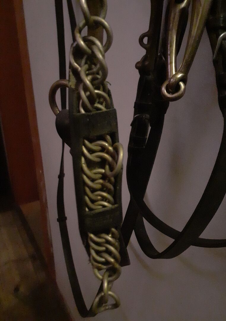 Wędzidło ujeżdżeniowe podwójne z wodzy WB - Podwójna uzda ujeżdżeniowa w komplecie - Sprenger KK ultra curb bit aurigan rozmiar 14cm - Wędzidło Sprenger KK ultra aurigan rozmiar 14cm - Łańcuszek pod brodę - Skórzane wodze 1x z paskiem Skórzane 1x z paskiem 1x gładkie Był tylko 2-3 razy na koniu, dlatego jest w bardzo dobrym stanie.