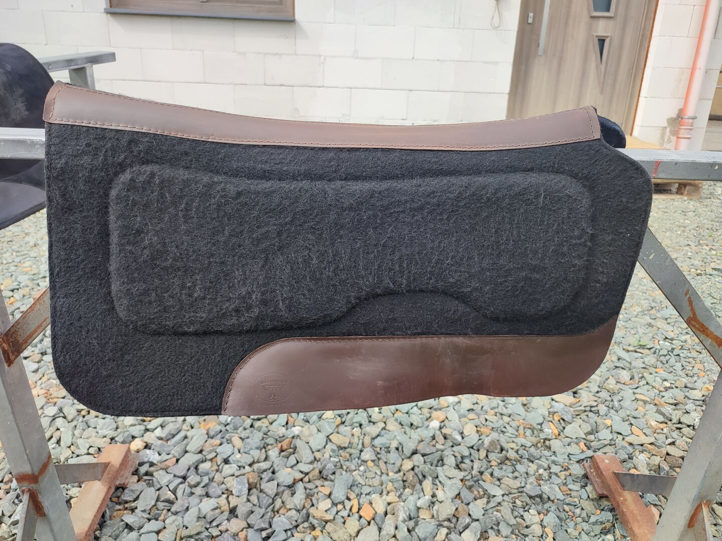Western Pad Merino Wool Felt - z wyściółką z pianki memory. Podkładkę kupiłem od Silverado w marcu tego roku, faktura jeszcze dostępna. Ze względu na zmianę na mniejsze siodło, nie pasuje już do niego. Wyszczotkowałem ją bardzo dobrze, patrz zdjęcia. Według producenta podkładka ma następujące cechy i wymiary - anatomicznie ukształtowany - Górna strona ok. 5 mm filcu syntetycznego - spód ok. 8 mm filc z wełny merynosów - Dodatkowa wyściółka w obszarze powierzchni styku z siodełkiem wykonana z - ok. 10 mm pianka z pamięcią - pochłaniające pot, pochłaniające wstrząsy i rozkładające nacisk - Mocne skórzane wykończenie Rozmiar: 31" x 32" (77,5 x 80 cm) Proszę być uczciwym podczas negocjacji. Dostępna faktura