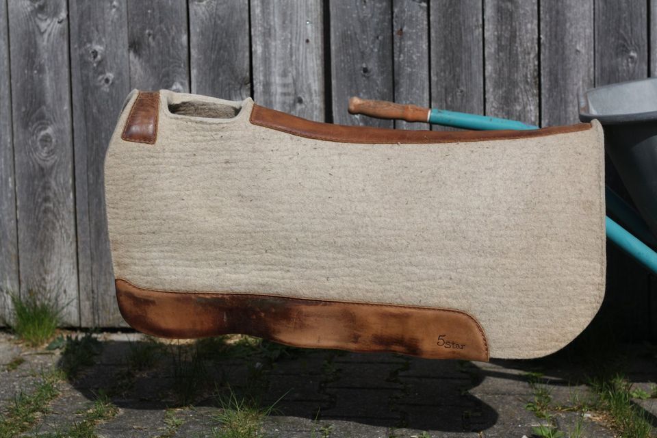 Western Path 5Star - Sprzedam używany pad westernowy firmy 5 Star equine Rozmiar: 7/8 i 32/30 Ślady użytkowania w okolicach łopatek, nie ogranicza funkcjonalności. Sama kupiłam używany - wtedy za 300 euro. NP wynosi teraz 480 euro