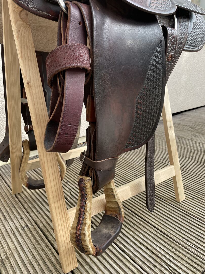 Western Saddle / American Working Saddle - Sprzedaję dobrze zachowane i wysokiej jakości siodło robocze z USA. To było ręcznie robione. Potrzebuje tylko trochę oleju... Proszę zobaczyć zdjęcia dla pomiarów.