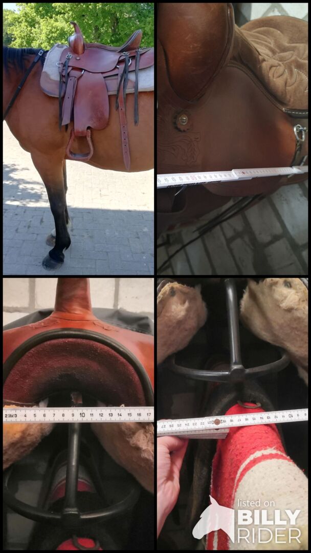 brązowy - Sprzedaję moje westernowe siodło, ponieważ nie pasuje na mojego konia. Wymiary można zobaczyć na zdjęciach 😊
