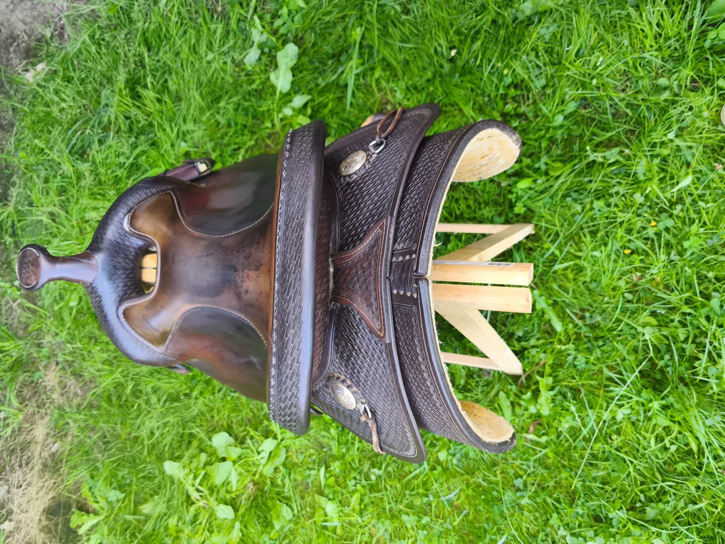 Western saddle Crates 2160-3, 16 cali - Westernowe siodło w dobrym stanie, marki Crates, szerokość komory 3 (wymiary na zdjęciach). Klasyczne siodło o wysokiej jakości wykonania.