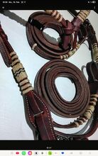 Sprzedam wędzidło western snaffle w rozmiarze COB. W zestawie pasek pod brodę, naczółek, dzielone lejce, pasek na gardło. Szczególnie świetna jest funkcja blokowania dzielonych wodzy i wędzidła. Dzięki temu prostemu systemowi nie ma węzłów do otwierania, zamykania lub zmiany sznurków lub bitów.