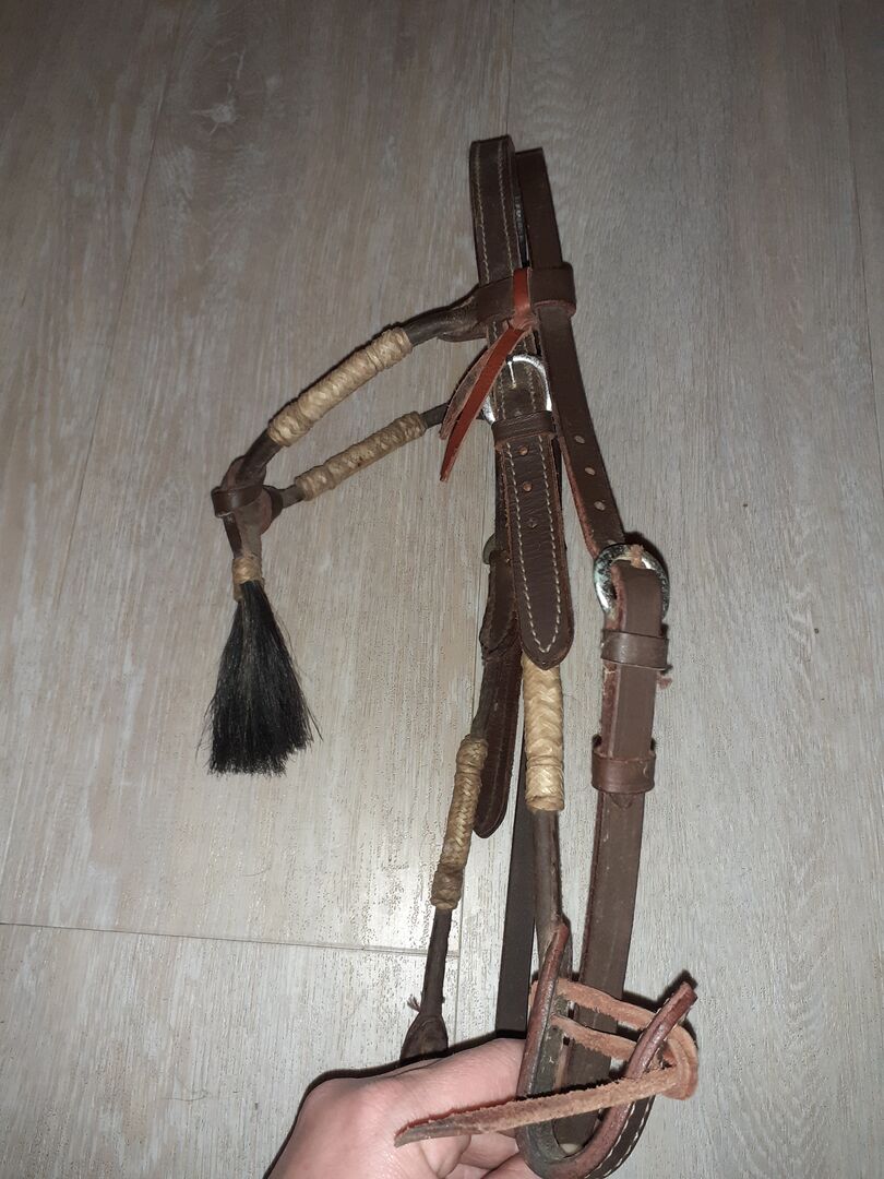 Western Snaffle, Western Bridle - Szykowny snaffle z wykończeniem rawhide i puchem z prawdziwego włosa.