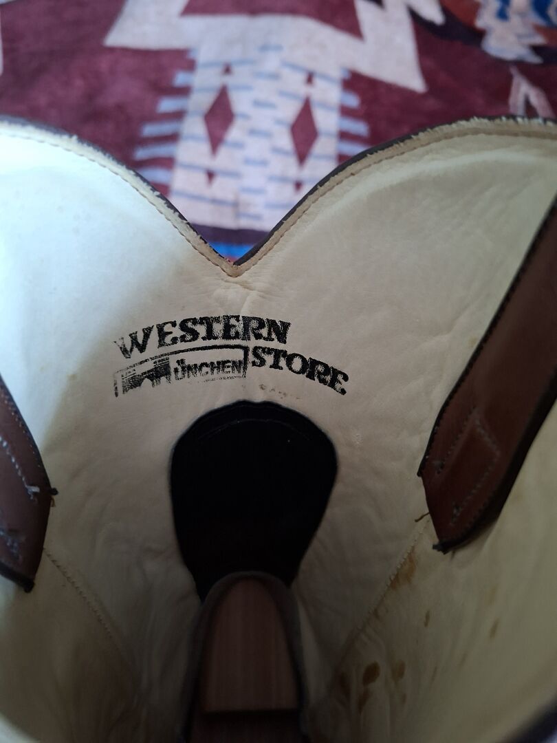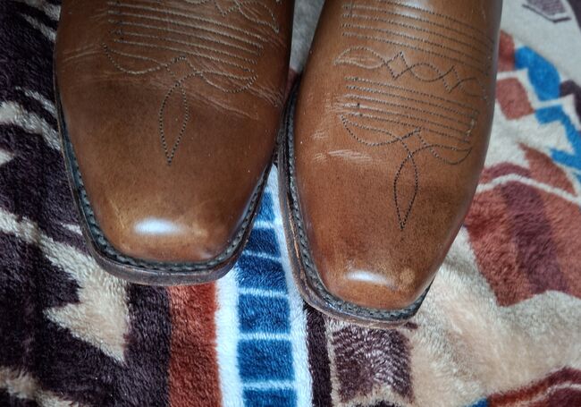 Westernowe buty kowbojskie Tony Mora rozmiar 8 1/2 (41-42) - Sprzedam parę butów westernowych od Tony Mora rozmiar 41-42 (8 1/2) Buty są noszone, ale w dobrym stanie. Podeszwy powinny być przerobione, aby chronić szwy. Zobacz zdjęcia, aby zobaczyć oznaki zużycia.