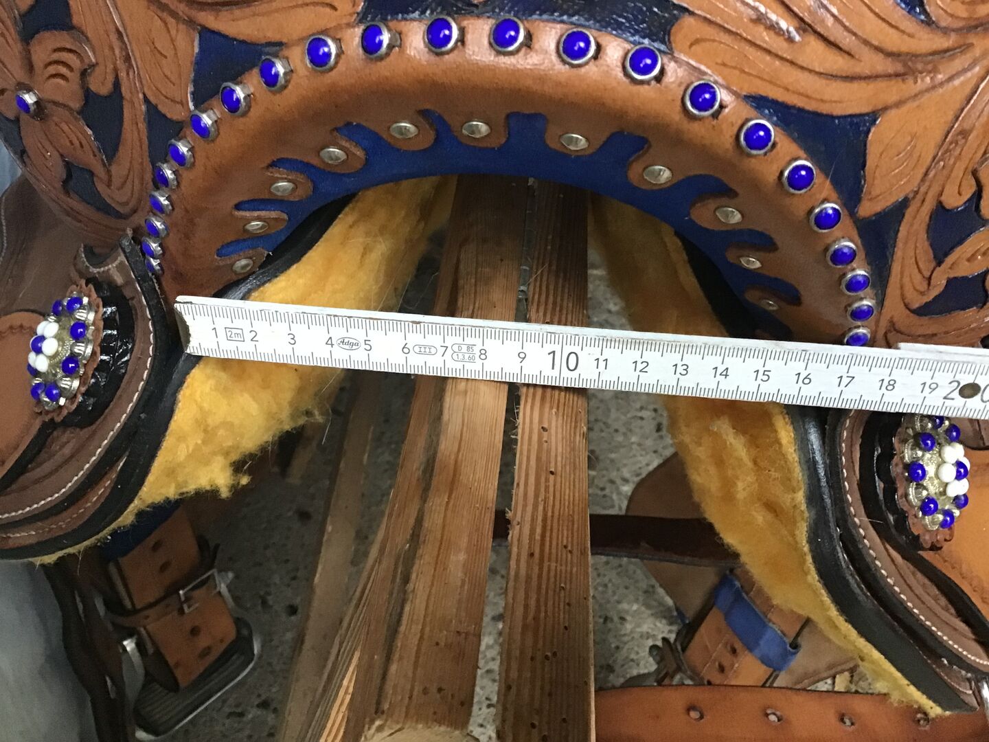 Westernowe siodło dla pełnowymiarowego kuca - Westernowe siodło było na kucyku dwa razy. Popręg jest nadal owinięty po transporcie. Wymiary podane są na zdjęciach.