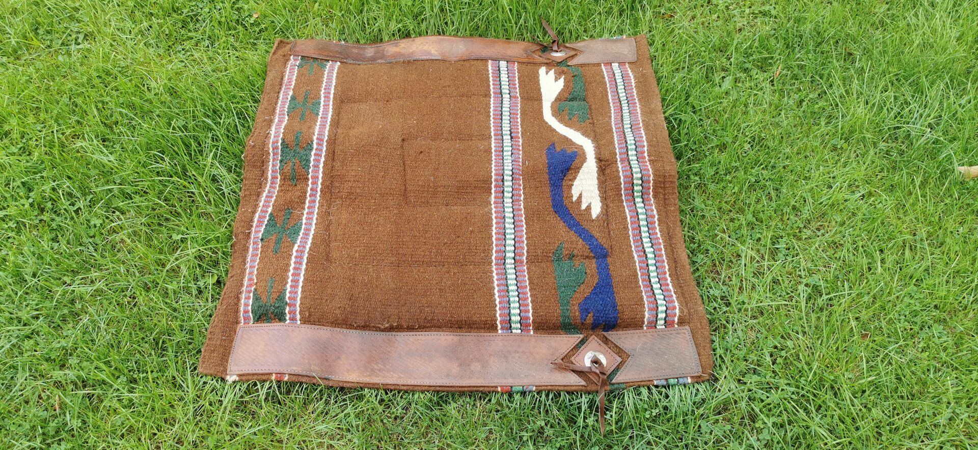 Piękny pad western w kolorach skóry brązowy/zielony/beżowy do sprzedania. Podkładka została wyczyszczona i zdezynfekowana! Niestety nie wszystkie końskie włosy wyszły, ale podkładka jest nadal w dobrym stanie.