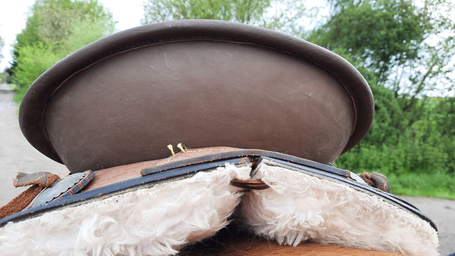 Siodło: gładka skóra z oznakowaniem (błotnik oraz przednia i tylna łękawica ze srebrnymi okuciami). Zdjęcia)