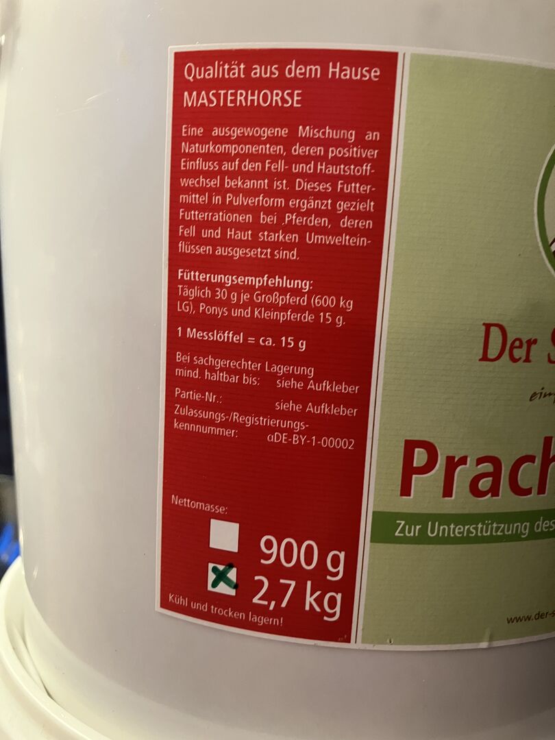 Wiadro Stallmeister PrachtStück firmy Masterhorse o wadze 2,7 kg - 2,7 kg (nowe i nieotwarte) i 1,5 kg wiadro (otwarte) wspaniałości za 30 euro, NAJLEPIEJ PRZED 4/25 Nowa cena za 2,7 kg: 45,49 euro