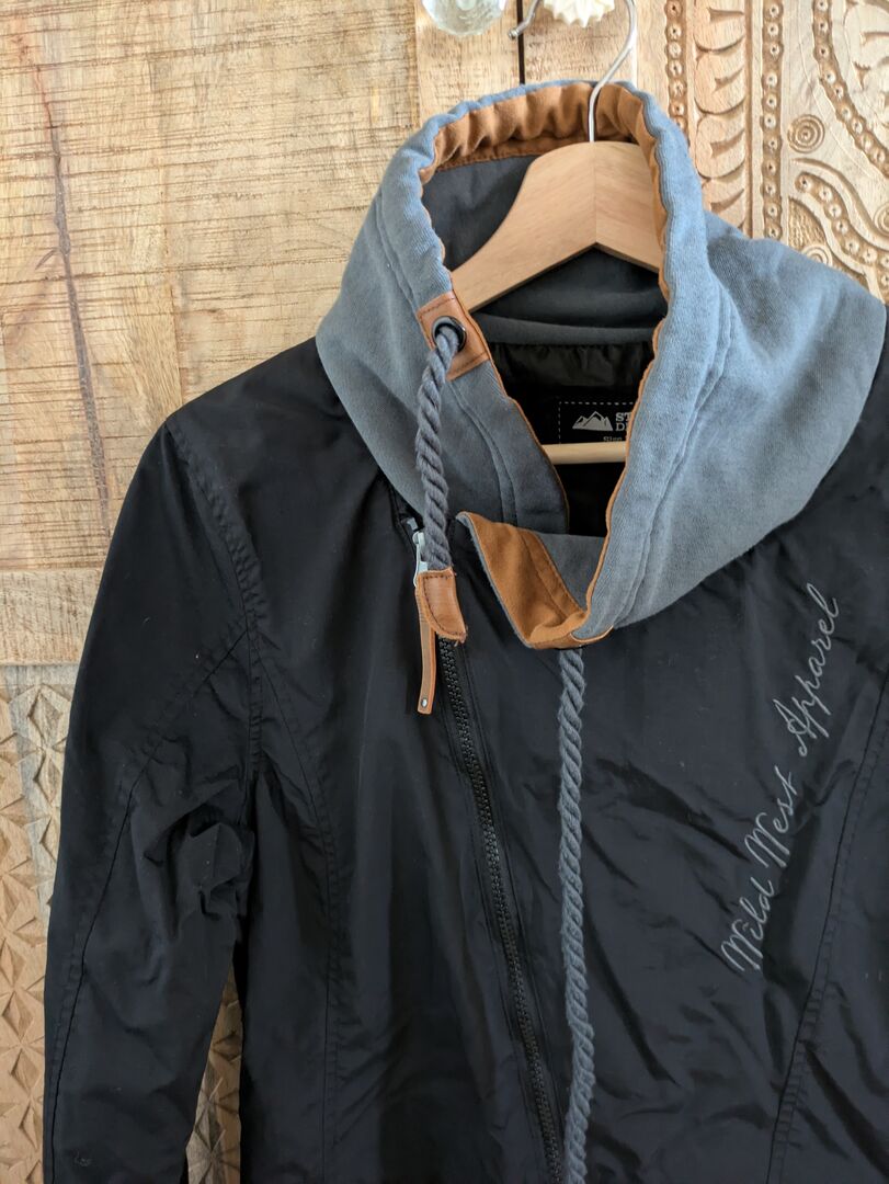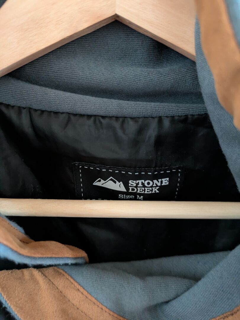 Wiatrówka Stonedeek - Wiatrówka Stonedeek Lekka kurtka od Stonedeek, rozmiar M w kolorze czarnym. Prążkowany dół i mankiety, ukośny zamek błyskawiczny i kieszenie na zatrzaski, materiał przeciwpotny na kołnierzu i sznurki ściągające. Haft z przodu i skórzana naszywka na rękawie. Z pierwszej edycji. Uwielbiałam nosić tę kurtkę, niestety już na mnie nie pasuje. W bardzo dobrym stanie i bez wad. Zamienię również na rozmiar L.