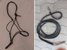 Wiązany halter i lina westernowa - Oferuję kombinację wiązanego haltera, liny westernowej i kija marchewkowego do pracy naziemnej i / lub do załadunku na przyczepę.