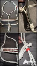 Wiązany halter mini minishetty - Witam, Sprzedaję ten wiązany halter. Jest to rozmiar Mini Shetti Szeroki, miękki nosek z dżetami Z odblaskowym paskiem, starałam się to pokazać na zdjęciu Z uproszczonym zapięciem. Mały czerwony węzeł można przesunąć na odpowiednią długość, a następnie zapiąć w podobny sposób jak pasek. Zaletą jest to, że bardzo łatwo jest go odpiąć nawet pod napięciem lub węzeł można pociągnąć w dół i jest luźny, a następnie można go bardzo łatwo otworzyć. Myślę, że na zdjęciach dość dobrze widać o co mi chodzi, trudno to opisać Proszę o propozycję ceny, ale proszę o realistyczną i uczciwą.
