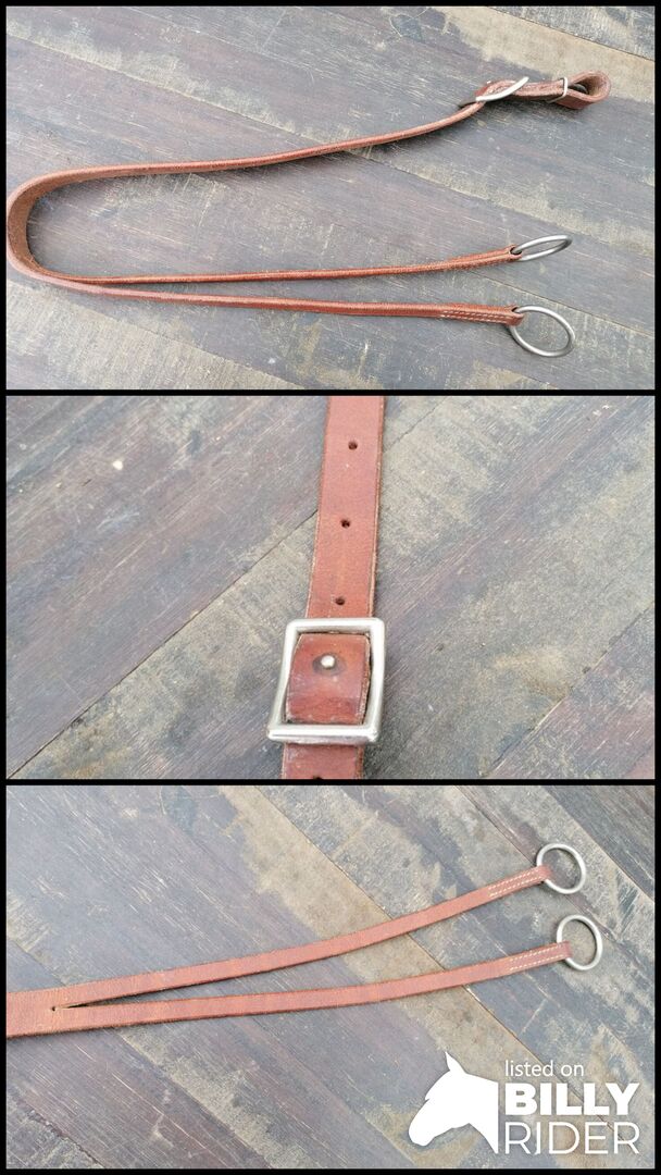 Widełki treningowe western, martingale western, skóra do uprzęży, nieużywane - Widełki treningowe wykonane z amerykańskiej skóry uprzęży - Długość regulowana d.m.v. Klamra Conwaya - Części metalowe ze stali nierdzewnej - Pierścienie zszyte podwójnie. - Karabinek do mocowania do pasa biodrowego - Karabinek nie jest widoczny na zdjęciu