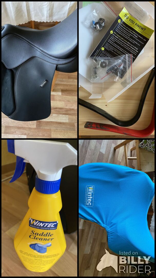Ponadto w ofercie znajdują się: 3 wpusty: czarny, niebieski (obecnie zamontowany) i czerwony. W komplecie z zapasowymi śrubami. Małe i duże Flexiblocs Podkładka pod siodło z imitacji czerwonego zamszu, rozmiar DR WB Środek do czyszczenia siodeł Wintec Oryginalny środek do czyszczenia siodeł Wintec