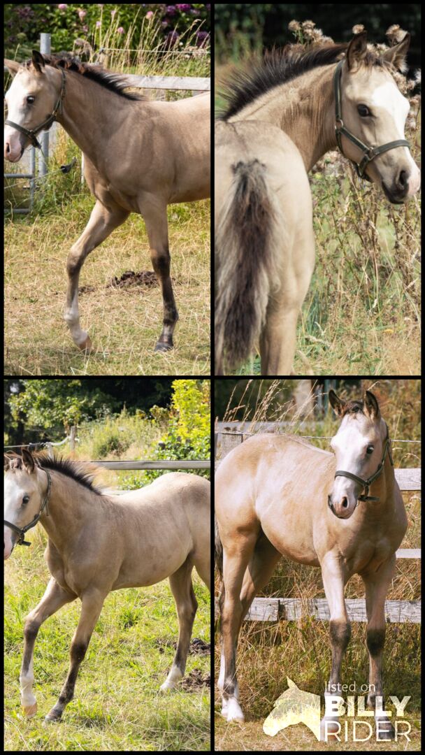 Wnuk gangstera HF w złotej skórze - Lokalizacja: 42477 Radevormwald Smoking Sugar Socks - ten piękny ogier rasy Quarter Horse, urodzony 11.5.24, zachwyca niezwykłym umaszczeniem (goldbuckskin) i mocną, poprawną budową. Jest już wysoki jak na swój wiek. Szacowana ostateczna wysokość będzie wynosić około 150-155 cm. Będzie sprzedawany z pełnymi papierami AQHA, które są już dostępne, oraz paszportem końskim. Jest zdrowy i będzie dorastał w stadzie w najlepszych warunkach. 4-panelowy n/n i Herda n/p. Jest odrobaczony i zaszczepiony zgodnie ze swoim wiekiem w momencie dostawy. Smoking Sugar Socks zna już źrebaka 1x1 i radzi sobie bardzo dobrze. Ma bardzo słodki charakter i jest skupiony na ludziach. Dzięki dobremu rodowodowi, źrebak będzie później świetnym młodym koniem do reiningu/all-round areny. Jego ojcem jest White Mobster, syn pokazywanego z sukcesami HF Mobstera. Matka pochodzi od Docs Royal Lancer/Double Dip Of Zip. Przyciąga wzrok wyjątkowym kolorem!