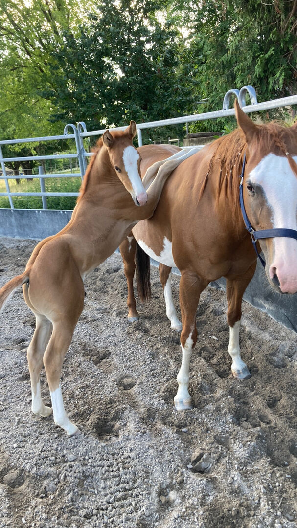 Wnuk Topsail Whiz z fajnym charakterem - Lokalizacja: 75015 Straubenhardt Fly My Phoenix - wspaniały, młody wałach rasy Paint Horse, urodzony w 2023 roku, o szacowanym wzroście między 150 a 156 cm, na sprzedaż w kochających, troskliwych rękach. Ten wyjątkowo urodziwy i poprawny młody wałach imponuje nie tylko swoim wyglądem, ale także wewnętrznymi wartościami. Ma mocne podstawy, jest dobrze umięśniony, silnie zbudowany i zdrowy. Fly dorasta w mieszanym stadzie, jest trzymany w boksie z padokiem w nocy i jest dobrze zsocjalizowany. Jest zaznajomiony z weterynarzem, kowalem, szczepieniami i regularnym odrobaczaniem. Absolutnie uroczy, zorientowany na ludzi i nieskomplikowany typ, który zawsze stara się robić wszystko dobrze. Fly jest nieustraszony, pewny siebie i zawsze spokojny - prawdziwy niezawodny koń. Jego kochający charakter czyni go prawdziwym partnerem dla serca. Wałach jest wyszkolony w jeździe w ręku i można go dobrze uwiązać. Zna lonżowanie i chód konia. Bez problemu idzie w teren jako koń ręczny. Z jego pierwszorzędnym reiningowym rodowodem (wnuk Topsail Whiz/Gatling Gun), ma doskonały potencjał do klas reiningowych. Jest silny w ruchu i chętny do nauki - gotowy, by go zachęcać i dalej rozwijać. Już opłacony w programie EWU dla młodych koni. Poszukiwany: Kochający dom, w którym ten wyjątkowy młody koń jest ceniony jako równorzędny partner i może nadal rozwijać swoją jakość. Nie na sprzedaż jako koń czysto sportowy. To the seller's offerlaunch