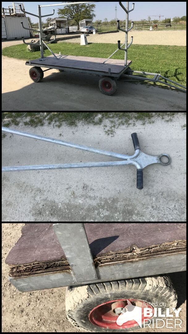 🌷 Przeznaczony do 120 tyczek przeszkodowych D=10 cm podzielonych na 8 przegródek. 🌷 Stół obrotowy z łożyskami kulkowymi ułatwia obracanie, nawet gdy wózek jest pełny. 🌷Szerokie opony, metalowa obręcz z łożyskiem kulkowym 🌷 Ocynkowana rama i dyszel Ucho do holowania głowicy kulowej, szczęki i uchwyty są zamontowane na dyszlu. 🌷 Zaczep z tyłu na dodatkowe wózki 🌷Ramiona nośne są wyposażone w osłony końcowe chroniące pręty 🌷Platforma o wymiarach 250 cm x125 cm
