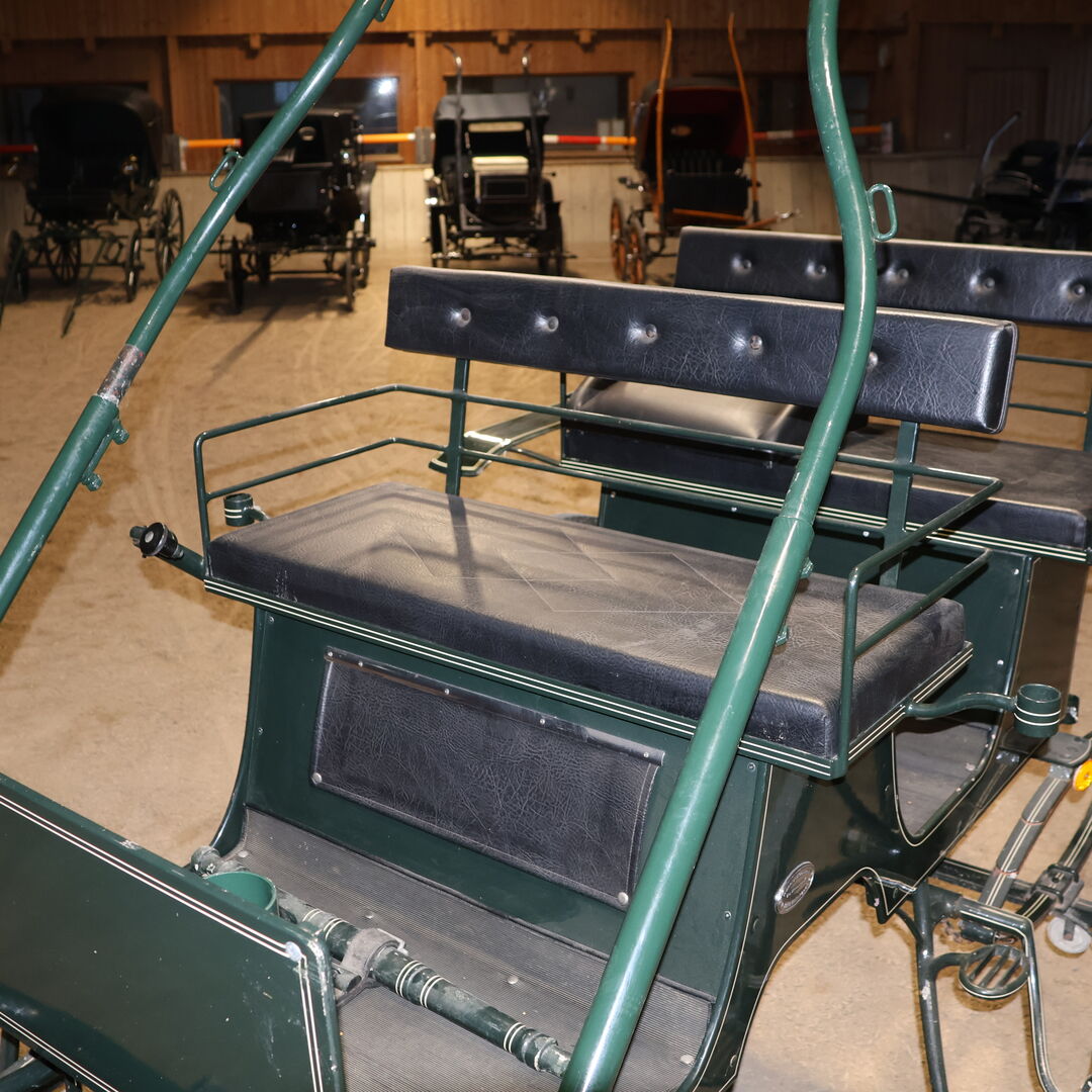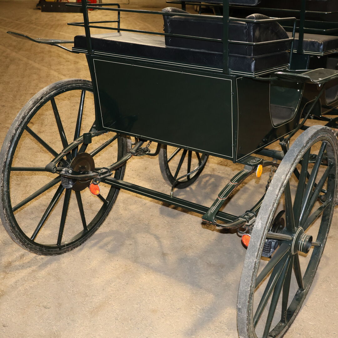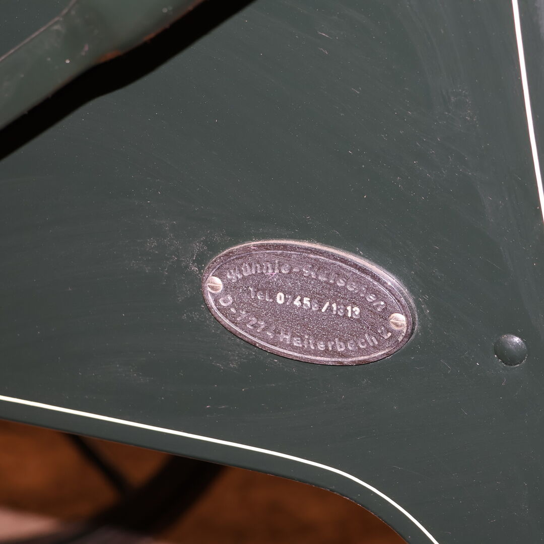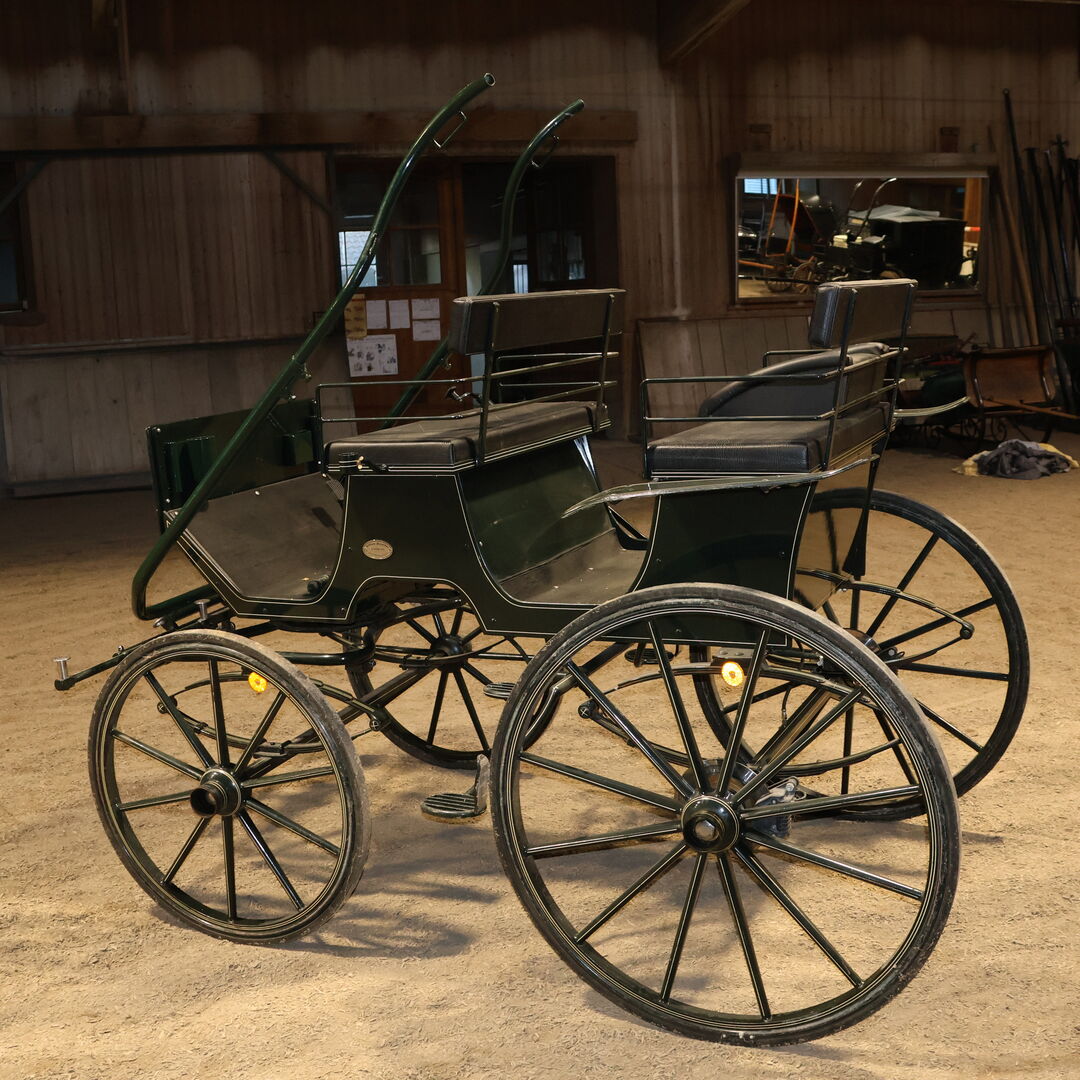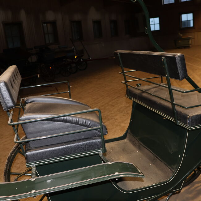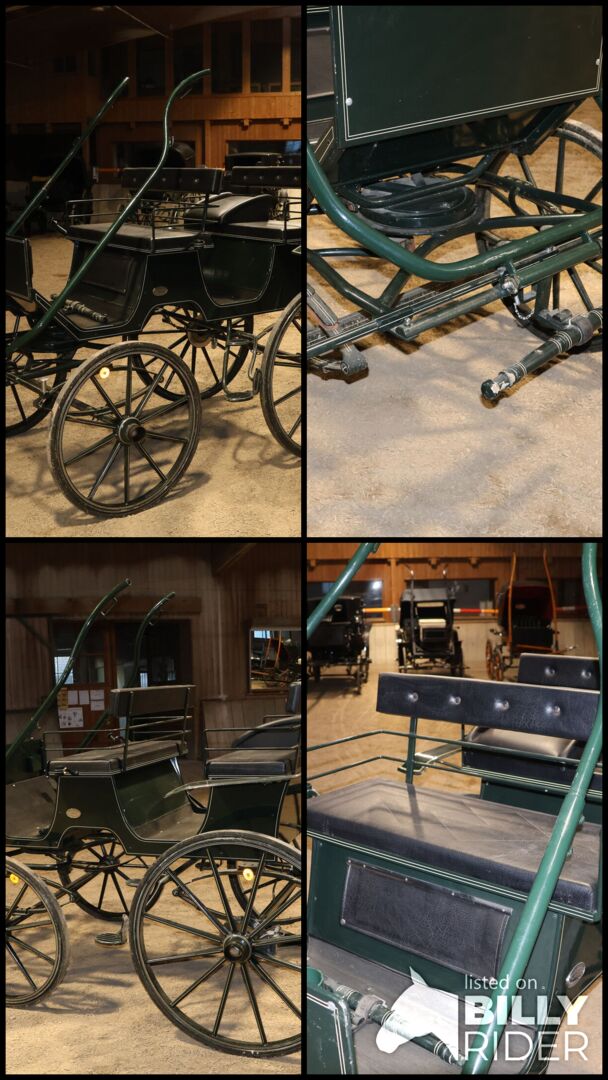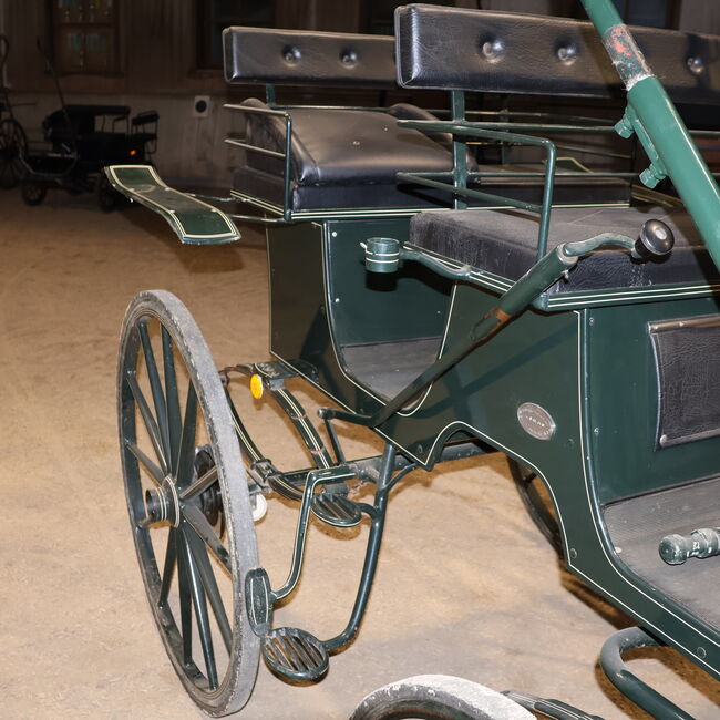Marka: Kühnle Typ wózka: Wózek myśliwski Typ powozu: Pojedynczy/podwójny Typ konia: Duże konie Stan: Dobry (lakier w dobrym stanie, tapicerka w dobrym stanie) Gotowy do jazdy: Tak, powóz jest w pełni sprawny i jeździ bez żadnych problemów. Kolor: Ciemnozielony z białymi akcentami Zakres dostawy: Patrz zdjęcia