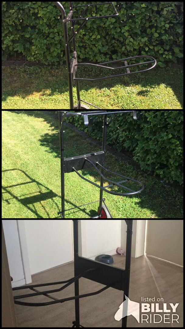 Wózek na siodła/wózek na siodła - Producent: Kerbl Kolor: czarny uchwyt na siodło, uzdę, pudełko do pielęgnacji (ok. 38x28 cm) Jak nowy
