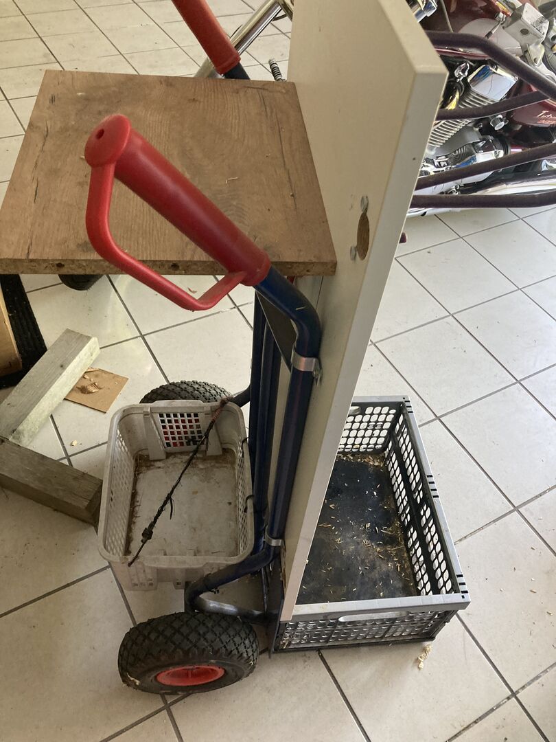 Wózek z siodłem - W ofercie samodzielnie wykonany wózek na siodło z uchwytem na siodło i uzdę oraz wsparcie dla walizki groomerskiej z pudełkami do schowania drobnych rzeczy (spray na muchy, smar do kopyt ec) Bardzo stabilny!!!