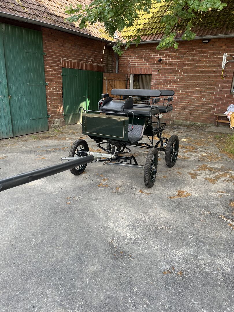 Oferuję tutaj piękną bryczkę. Sprzedaję go, ponieważ jest niestety za mały dla moich kucyków (Haflinger od 150 cm). Poprzedni właściciel jeździł na kucach do 145 cm. Jest świeżo nasmarowana i został wymieniony płyn hamulcowy. Można na nim jeździć z jednym lub dwoma końmi. Nożyce są w zestawie, ale nigdy nie były zamontowane, ponieważ zawsze był prowadzony na dwa konie. Ładny lekki powóz, szybko zaprzęgany i przeznaczony na przyjemne wycieczki.