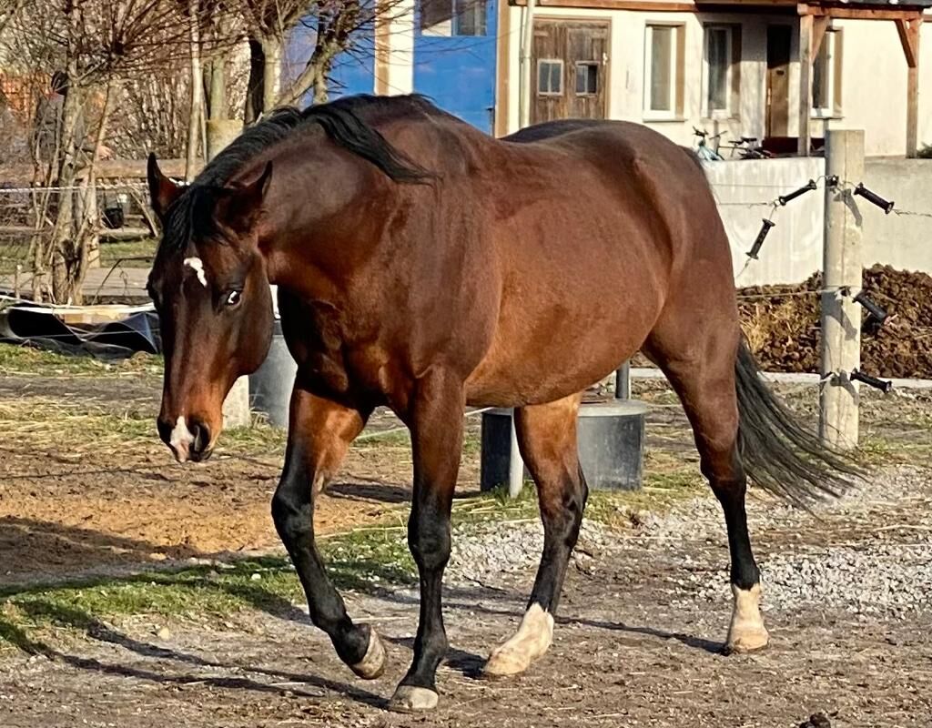 wrażliwy, piękny wałach Quarter Horse - Ze względu na zmianę kariery, ten przystojny wałach Quarter Horse szuka nowego domu z ludźmi doświadczonymi przez konie. Urodził się w 2017 roku i ma 153 cm wzrostu. Wałach ma bardzo słodki, wrażliwy charakter. Jest bardzo nastawiony na ludzi, dlatego potrzebuje opiekuna, który zapewni mu bezpieczeństwo i zaufanie. Wtedy zrobi wszystko dla swojego właściciela. Wie też jak postępować z dziećmi. Chex jest sprzedawany jako lekko przełamany. Byliśmy już z nim na szlakach. Nie jest używany, gdyż dopiero co został wbity. Nie jest to koń dla początkujących, ponieważ czasami może być nerwowy! Wałach ma dużo ekspresji i poprawną budowę. Chex ma solidny, wszechstronny rodowód. Jego dziadek to Hot Smokin Chex, a matka pochodzi od Expensive Hobbit. Zostanie sprzedany tylko w ręce doświadczonego jeźdźca. Miejsce przed ceną.