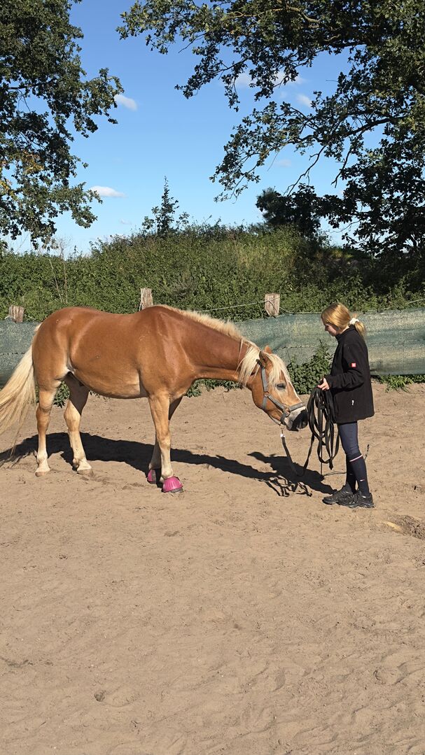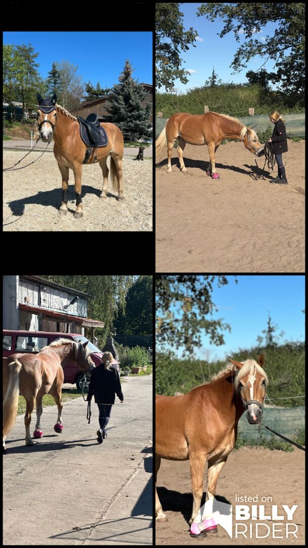 Wspaniały wałach rasy haflinger - Na sprzedaż jest 7-letni wałach rasy haflinger o wzroście ok. 1,62 m, wyszkolony do poziomu średniego (M). Jest bardzo słodkim, przytulnym koniem, który buduje bliską więź ze swoim właścicielem i lubi z nim pracować.
