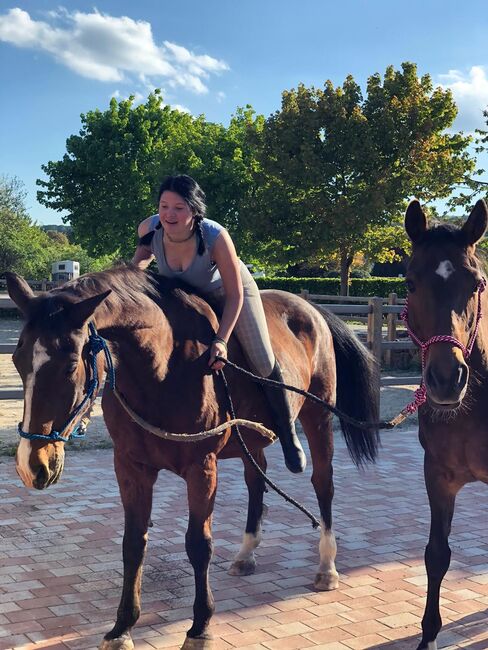 Ich bin im Springen bis E platziert und A Parcours sitzen einwandfrei. Ich kann ein Pferd über den Rücken bewegen und kenne die Bahnfiguren.