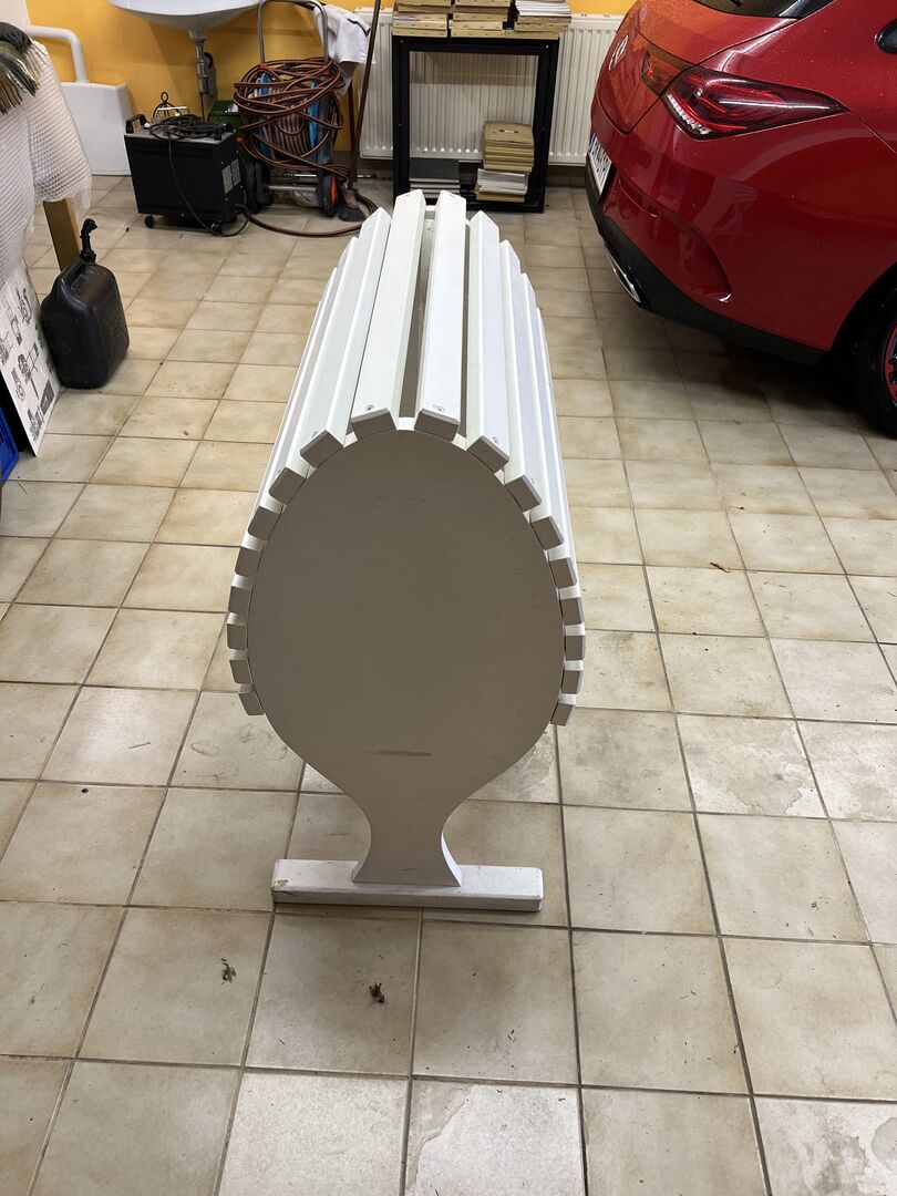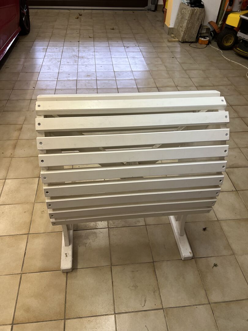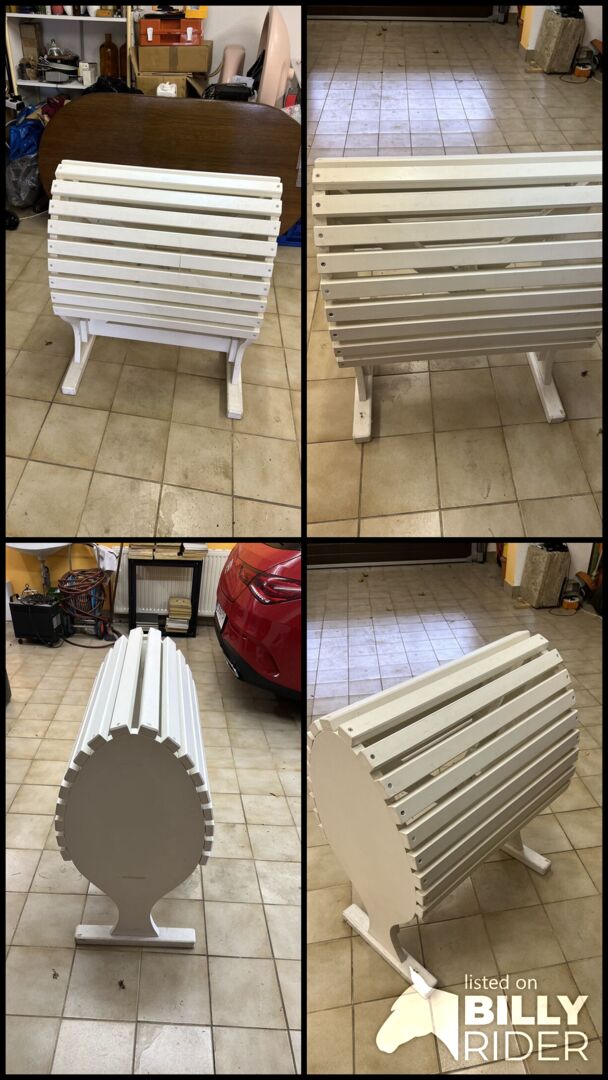 Wspornik siodełka - Bardzo ciężki drewniany stojak na siodło (ok. 30-40 kg) w kolorze białym. Ponieważ drewniane listwy są przykręcone na odległość, siodło lub siodło (podkładka pod siodło) może dobrze wyschnąć.