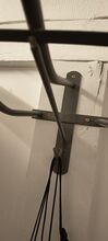 Wspornik siodełka i sufitu z karabińczykami - Wszystkie wsporniki jak nowe. Uchwyt siodełka szary. Uchwyt siodełka czarny. Wspornik sufitowy czarny. 5 euro za sztukę.
